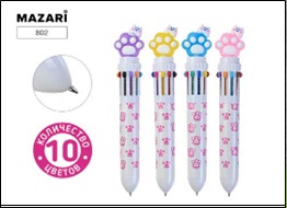 | 926396 | Ручка шар. Mazari "Лапки" 0,7 мм 10-ти цветная автомат. в карт. дисплее | 802 | 0.01 | 36 |