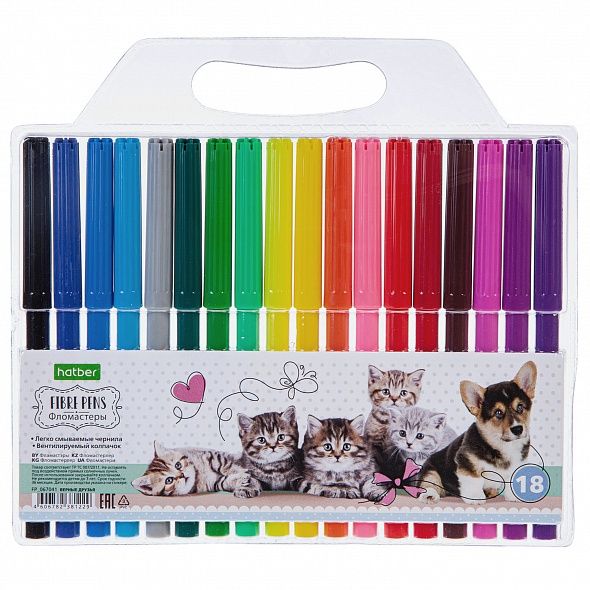 | 870534 | Фломастеры 18 цв. Hatber ECO "Верные друзья" в блист. с европодвесом | FP_067041 | 0.1 | 12 |