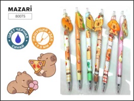 | 928084 | Ручка гел. Mazari "Capybara" 0,5 мм син. автомат. в карт. дисплее | 80075 | 0.008 | 48 |