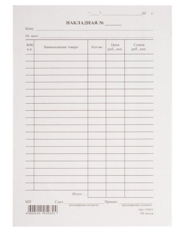 | 931278 | Бланк "Накладная" А5 100 л. газ. бум. Workmate | 30-2374 | 0.08 | 40 |