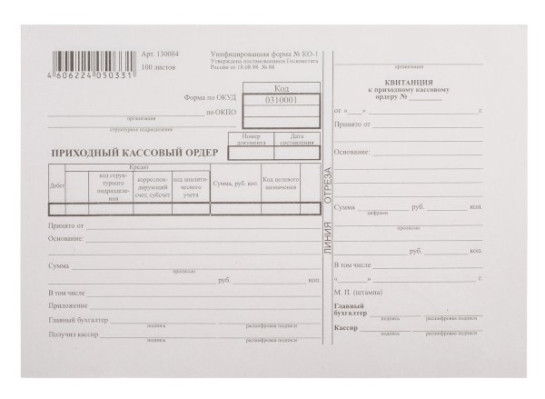 | 931280 | Бланк "Приходный кассовый ордер" А5 100 л. газ. бум. Workmate | 30-2378 | 0.08 | 20 |