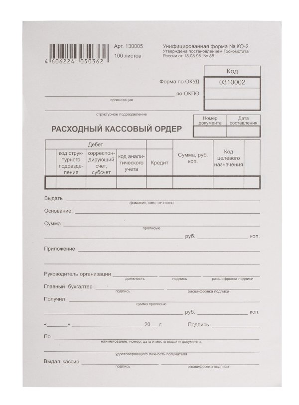 | 931281 | Бланк "Расходный кассовый ордер" А5 100 л. газ. бум. Workmate | 30-2381 | 0.08 | 20 |