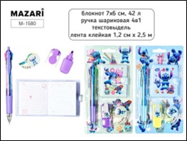 | 928063 | Набор "Зубастик" 04 пр. (блокнот,ручка шар.автомат.4в1,маркер-выделитель,скотч декор.) в блист. Maza | М-1577 | 0.05 | 18 |