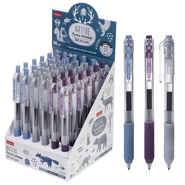 | 929823 | Ручка гел. Hatber "Native" 0,5 мм ассорти деним,графит,амарант автомат. в к/к | GP_083897 | 0.01 | 36 |