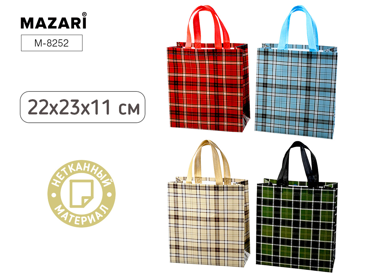 | 928385 | Пакет подарочный неткан. материал 22х23х11 см "Клетка" ассорти Mazari | М-8252 | | 12 |