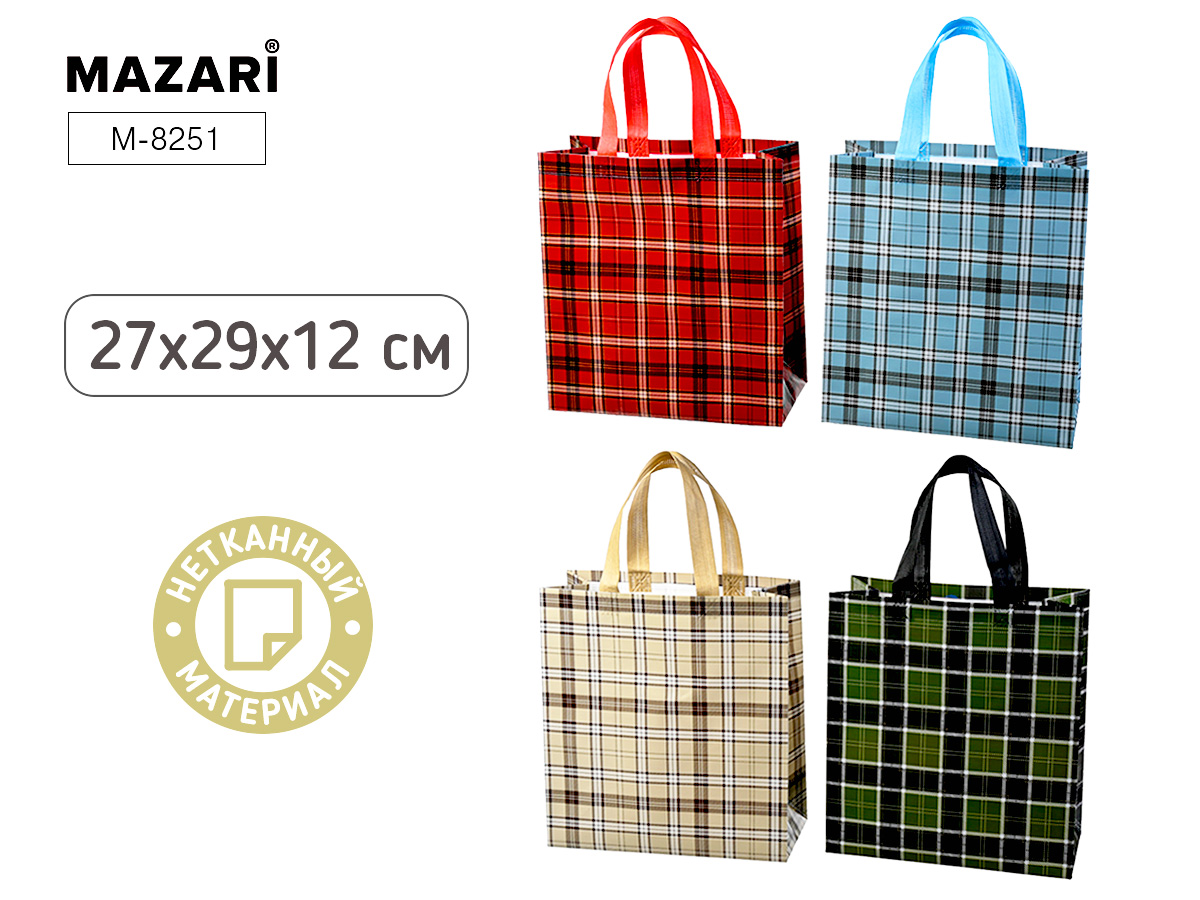 | 928386 | Пакет подарочный неткан. материал 27х29х12 см "Клетка" ассорти Mazari | М-8251 | | 12 |