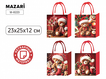 | 914078 | Пакет подарочный неткан. материал 23х25х12 см "Мишка в шапке" НГ ассорти Mazari | М-8223 | 0.03 | 12 |