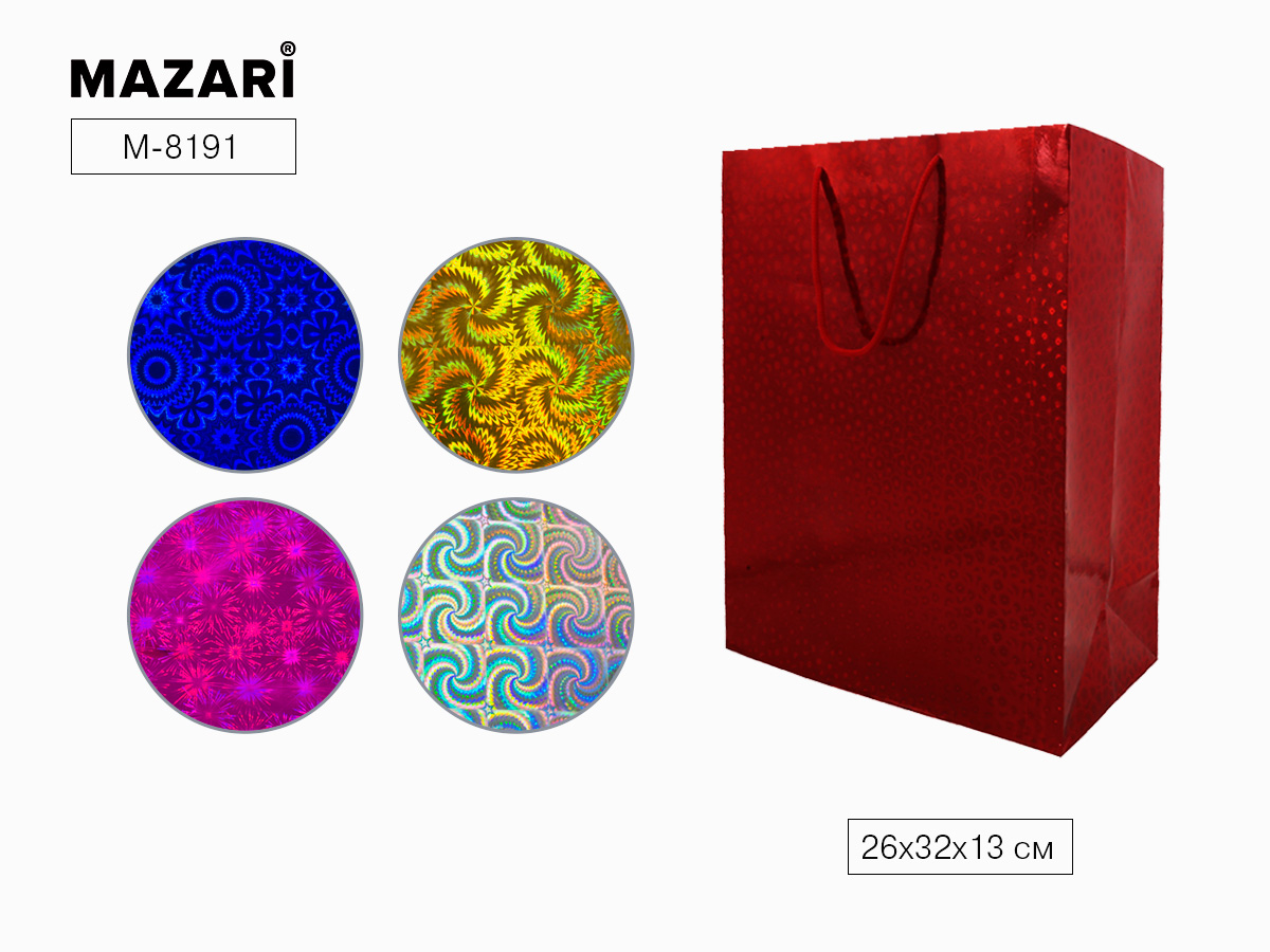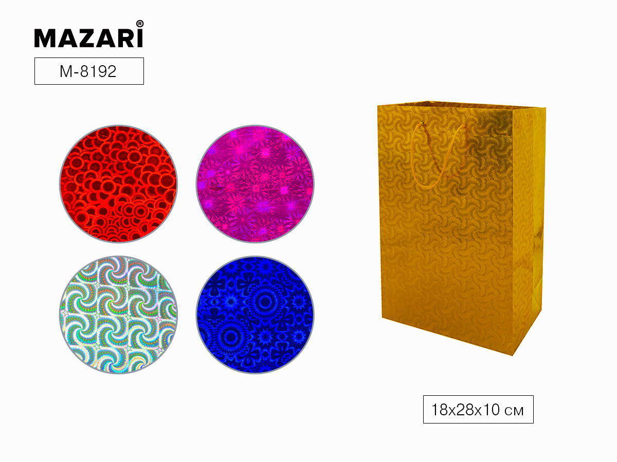 | 928379 | Пакет подарочный голограф. 18х28х10 см ассорти Mazari | М-8192 | | 10 |
