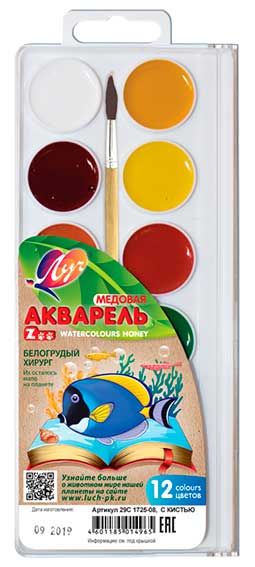 | 502698 | Краски 12 цв. акварель медовая б/к в пл. уп. с европодв. (Луч) "Zoo" | 19с1249-08 | 0.1 | 48 |