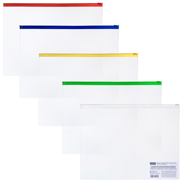 Папка на молнии 32,5х24 см (Хатбер) ZIP 130 мкм прозр. ассорти