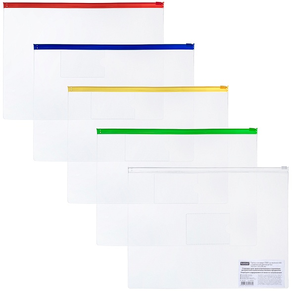Папка на молнии 32,5х24 см (Хатбер) ZIP 130 мкм с карманом для визитки прозр. ассорти