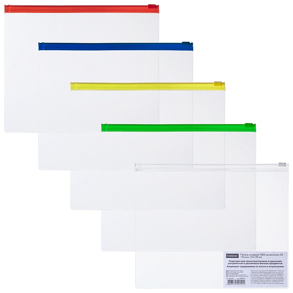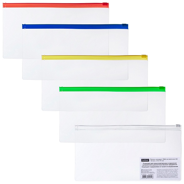 Папка на молнии 25,5х13,5 см (Хатбер) ZIP 130 мкм прозр. ассорти