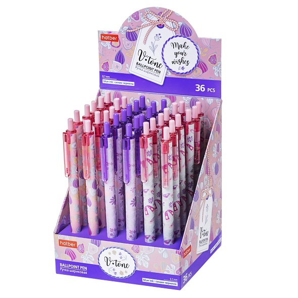 Ручка шар. Hatber "V-tone" 0.7 мм син. автомат. в к/к