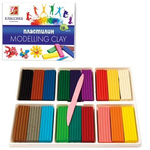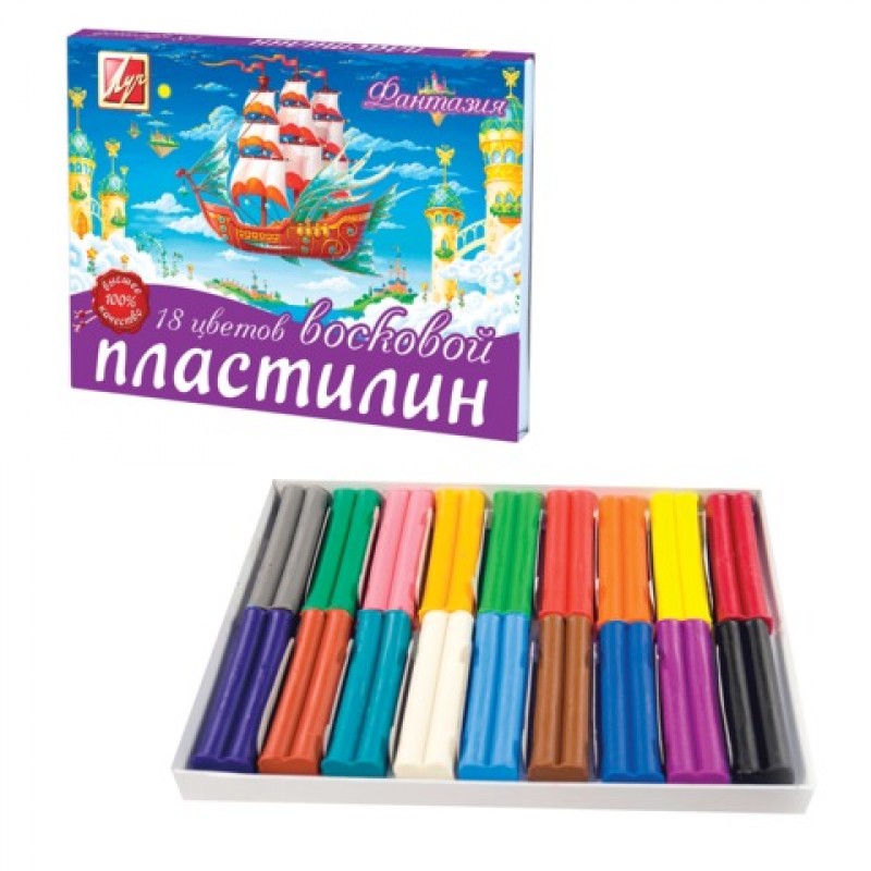 Пластилин 18 цв. 315 г "Фантазия" восковой + стек (Луч)