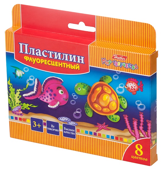 Пластилин 08 цв. 120 г "Морская семейка" флюоресц. + стек в к/к с европодвесом Hatber
