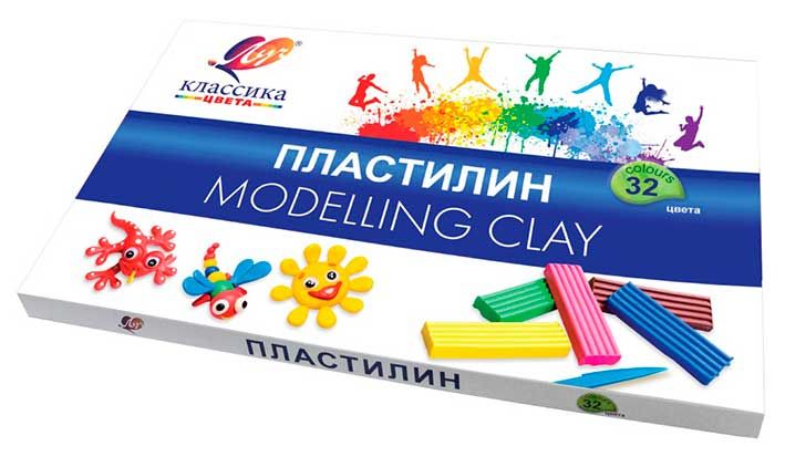 Пластилин 32 цв. 640 г "Классика" +стек (Луч)