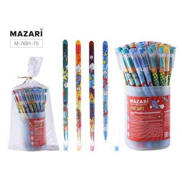 Ручка шар. Mazari "Pop Art" 0.7 мм син. корп. ассорти на масл. основе в к/к