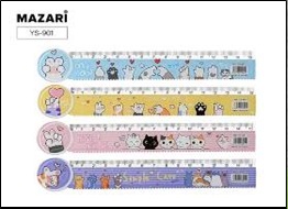 Линейка 20 см металлич. Mazari ассорти с дизайном в чехле