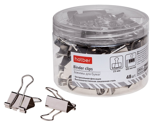 | 925396 | Зажим д/бумаг 25 мм Hatber серебр. в пл. банке | BC_059165 | 0.003 | 48 | |