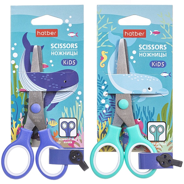 Ножницы Hatber "Подводный мир" 13 см в индивид. уп. с европодвесом