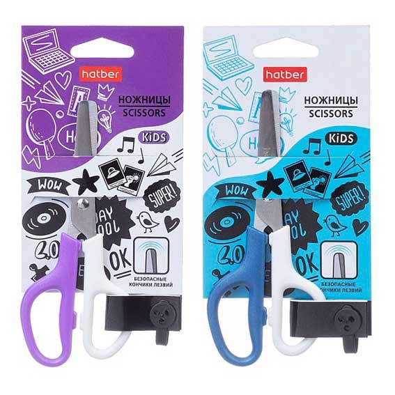 Ножницы Hatber "Школа" 14 см ассорти в индивид. уп. с европодвесом