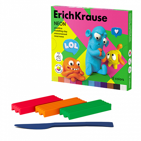 Пластилин 12 цв. 216 г "Jolly Friends NEON" + стек в к/к Erich Krause