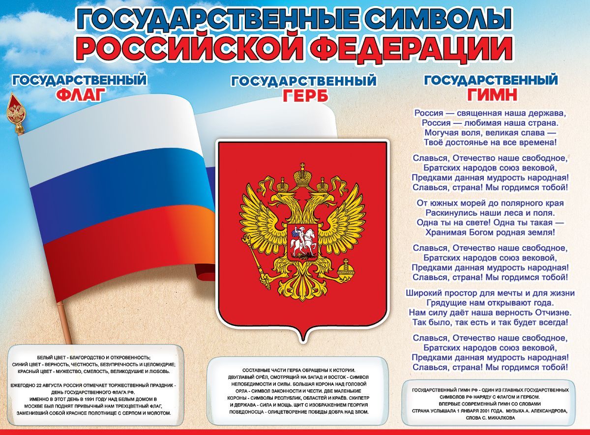 | 888805 | Плакат Государственные символы РФ А2 | 0801102 | 0.08 | 10 | |