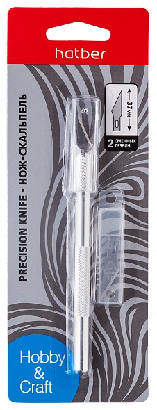 | 905135 | Нож канц. 37х9 мм Hatber скальпель +2 лезвия метал. корпус в блист. с европодвесом | UK_060166 | 0.03 | 24 | |
