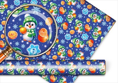 Бумага упаковочная 68х98 см в рулоне (ГК Горчаков) "Пингвинёнок с апельсином" НГ