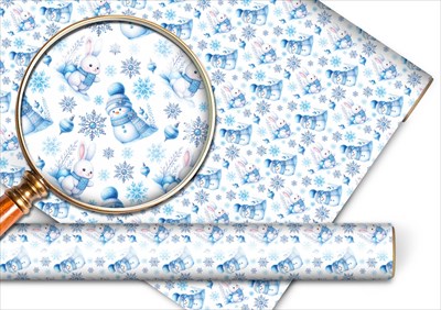 Бумага упаковочная 68х98 см в рулоне (ГК Горчаков) "Снеговички и зайки" НГ