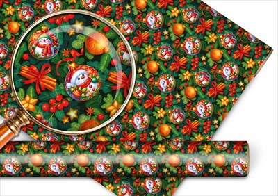 Бумага упаковочная 68х98 см в рулоне (ГК Горчаков) "Ёлочные украшения"