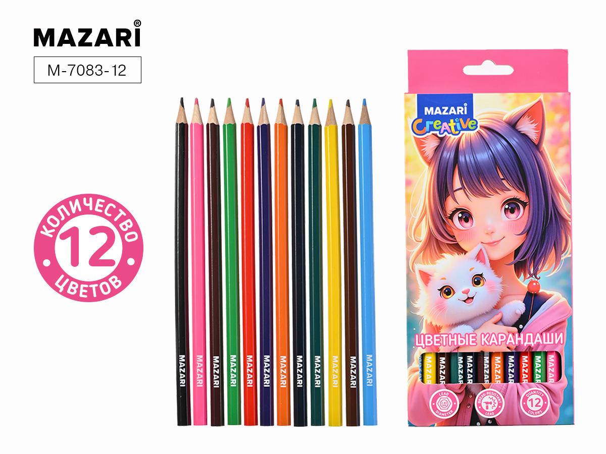 Карандаши 12 цв. Mazari "Девочка с котенком" в к/к с европодвесом