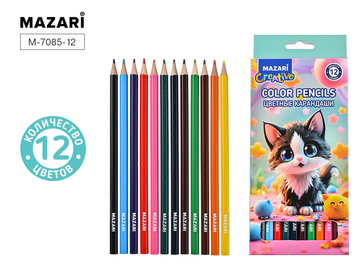 Карандаши 12 цв. Mazari "Котенок" в к/к с европодвесом