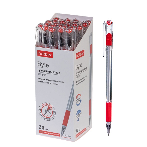 Ручка шар. Hatber "Byte" 0,7 мм красн. на масл. основе в к/к