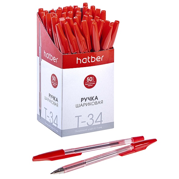 Ручка шар. Hatber "T-34" 0,7 мм красн. на масл. основе в к/к