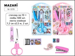 Набор "Зубастик" 06 пр. (скотч декор.2шт,диспенсер,степлер №10,скобы №10,ножницы) в блист. Mazari