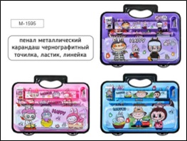 Набор "Зубастик" 05 пр. (пенал метал.,карандаш ч/г,точилка,ластик,линейка) в блист.с ручкой Mazari