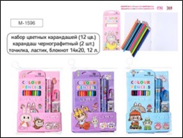 Набор "Ушастик" 06 пр. (карандаши 12цв.,карандаш ч/г 2шт,точилка,ластик,блокнот) в zip-пакете Mazari