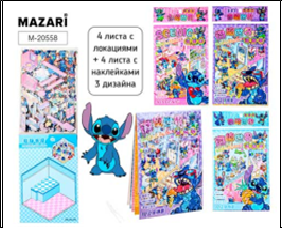 Материалы для творчества 17,8х22,5 см 4л.с локациями,4л.с наклейками,пинцет Mazari "Альбом с наклейк