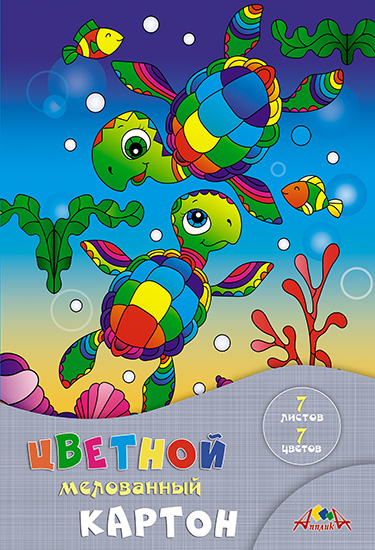 Картон А4 07 цв. 07 л. (АппликА) "Два черепашонка" мелов.