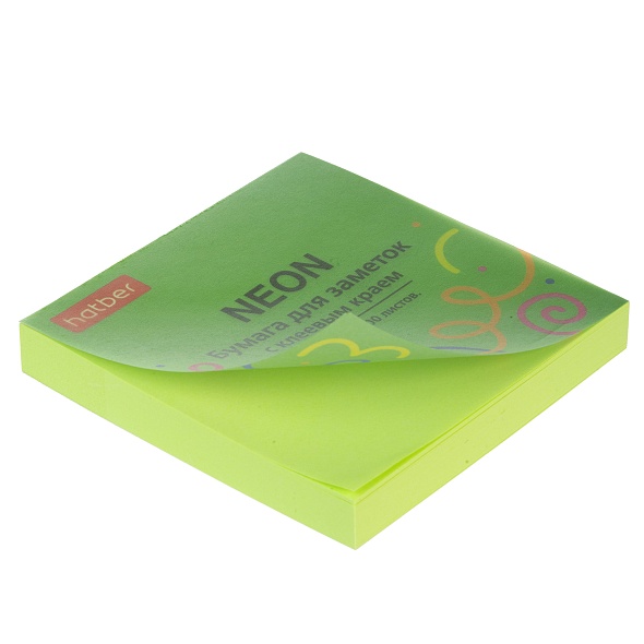 Бумага д/записей с липким слоем Hatber 75х75 100 л. "Neon" зелен.