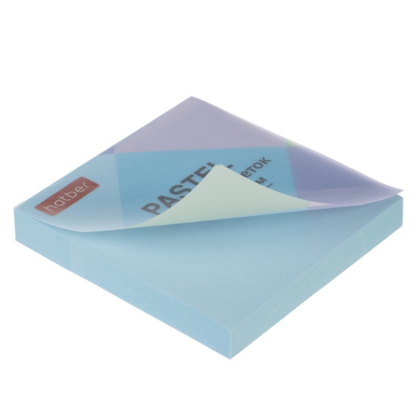 Бумага д/записей с липким слоем Hatber 75х75 100 л. "Pastel" голуб.