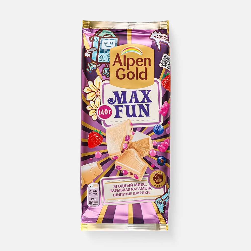 Шоколад Alpen Gold "Max Fun. Ягодный микс" плитка, белый, взрывная карамель мармелад шипучие шарики