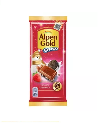 Шоколад Alpen Gold "Oreo Клубника и печенье" плитка, молочный 85 г