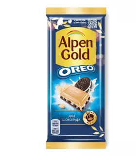 Шоколад Alpen Gold "Орео. Два шоколада. Ваниль и кусочки печенья" плитка, молочный 85 г