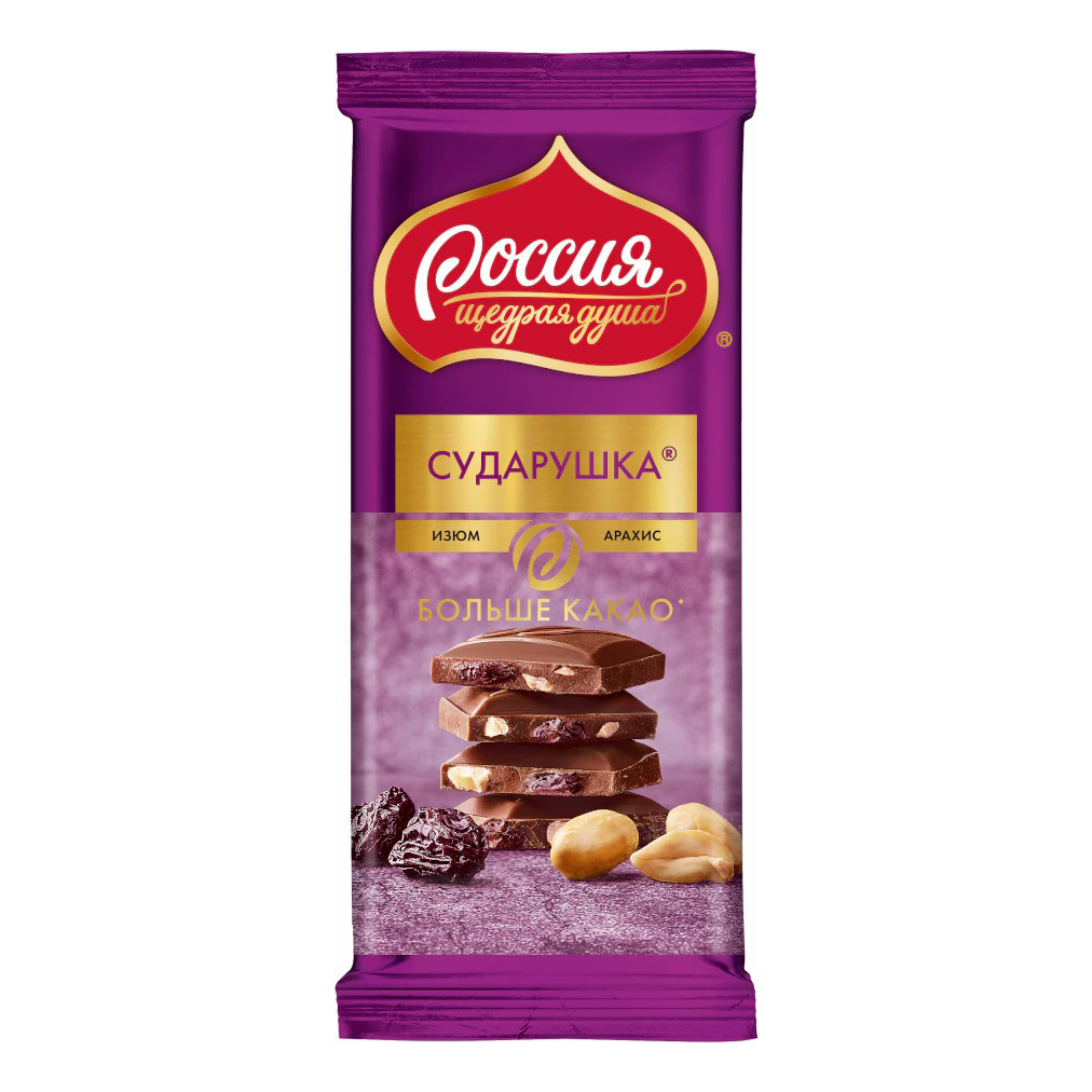 Шоколад (Россия) "Сударушка" плитка, молочный с изюмом и арахисом 82 г