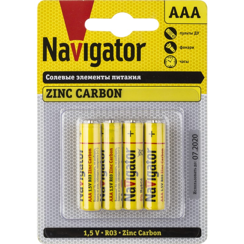 | 932114 | Батарейки R03/ААА (мизинч.) 04 шт. NAVIGATOR "Zinc Carbon BL4" 1,5 V в блист. с европодвесом | NBT-NS-R03-BP4/947672 | 0.06 | 12 |