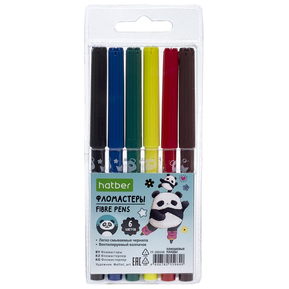 Фломастеры 06 цв. Hatber ECO "Плюшевые панды" в блист. с европодвесом