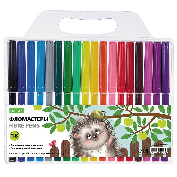 Фломастеры 18 цв. Hatber ECO "Хорошо быть ежиком" в блист. с европодвесом