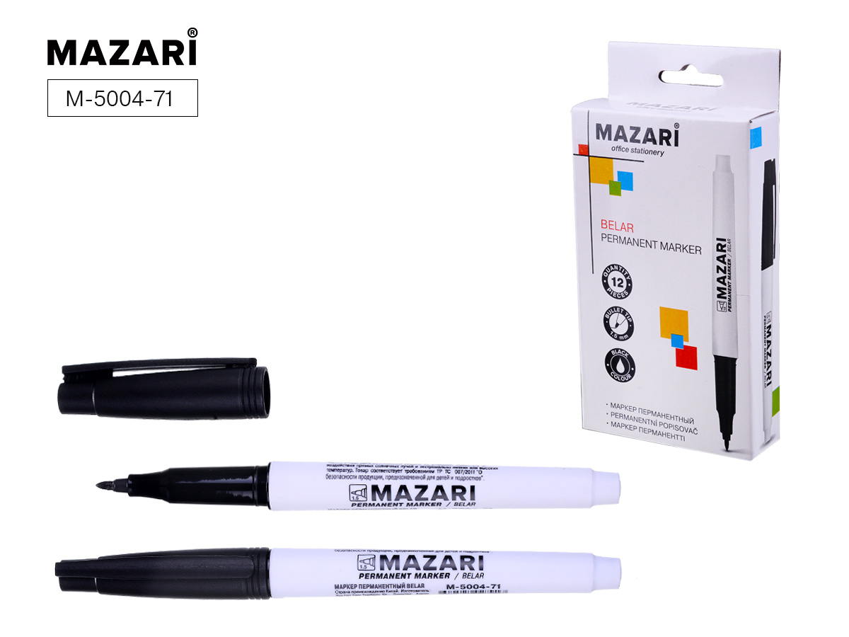 | 809351 | Маркер перм. Mazari "Belar" 1,5 мм черн. в к/к | М-5004-71 | 0.01 | 12 |